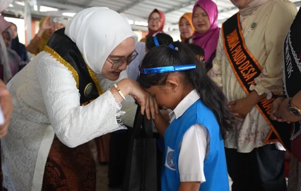 Sebagai bentuk perhatian dan dukungan kepada anak-anak, seusai kegiatan Bunda PAUD Provinsi menyerahkan Goody Bag yang berisi buku gambar, pensil warna, serta mainan edukatif kepada anak-anak PAUD Cahaya Mata.